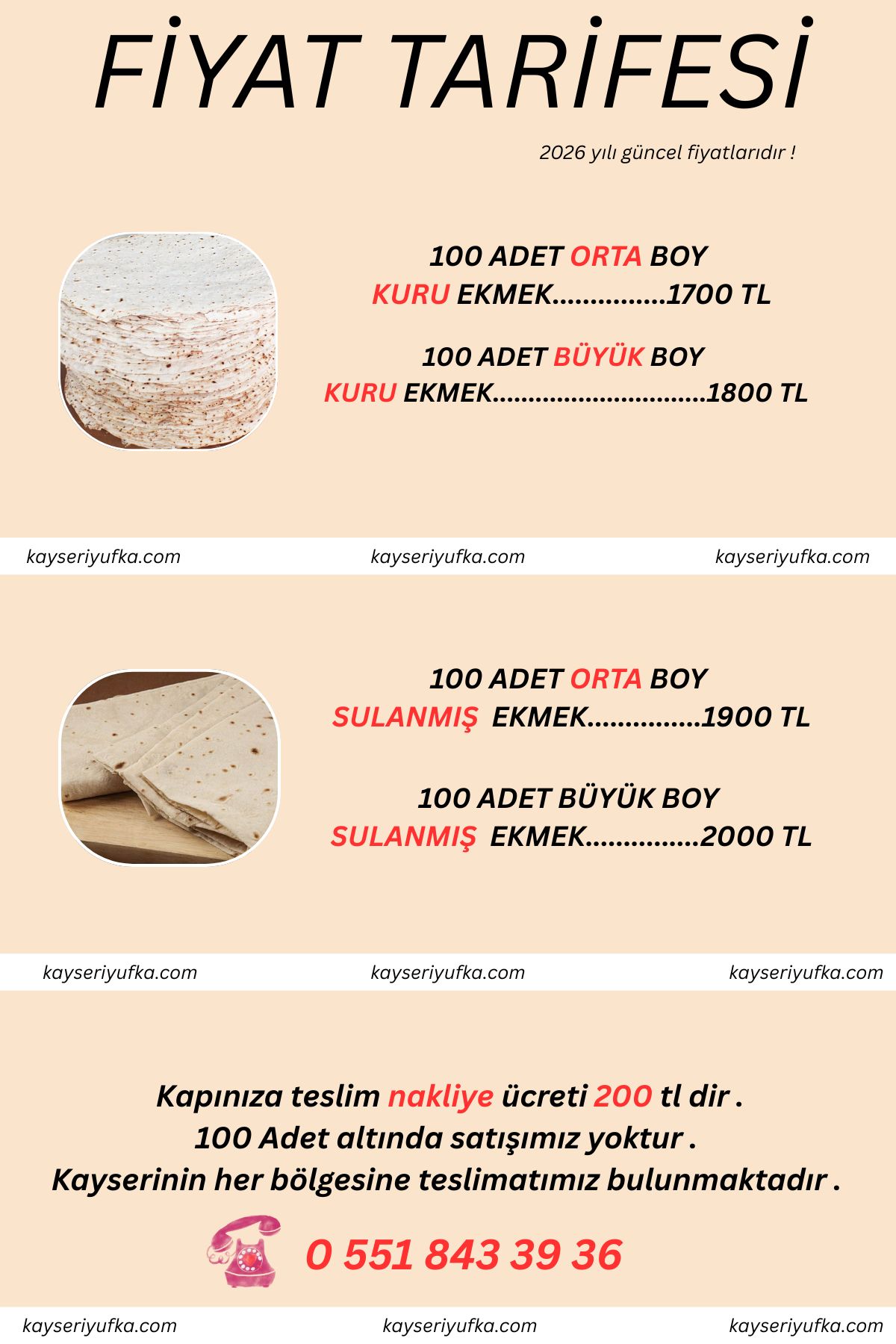TESLİMATLARIMIZ YALNIZCA KAYSERİ İÇİDİR ! ////////////////////////////////////////////// YUFKA EKMEKLERİMİZ 100 ADETDİR !